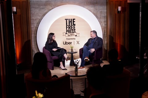 Bari Weiss hosts Senator Ted Cruz at a Free Press event presented with Uber and X on 18 January in Washington DC. Photograph: Leigh Vogel/Getty Images for Uber, X and The Free Press