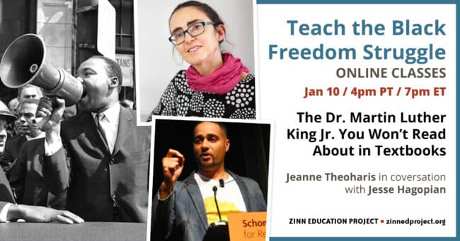 On January 10, the Zinn Education Project hosted historian Jeanne Theoharis in conversation with Jesse Hagopian about the Dr. Martin Luther King Jr. that is not found in textbooks and school curricula.